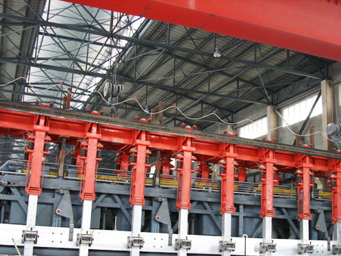 電解槽母線轉接框架是大型預焙陽極鋁電解槽的一個重要組成部分。在高溫、多塵、強磁場的條件下工作,專門用于電解槽的陽極母線升降。該設備在制造過程中,要求嚴格采用先進工藝控制零部件的加工質量,受力的關鍵部件等要求采用特殊材。